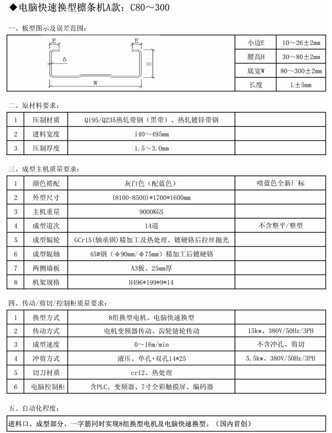 | 沈阳加工信息网 > 供应信息 > 现货销售C80-300 电脑快速换型檩条机(A款)厦门市全新彩钢结构有限公司 |